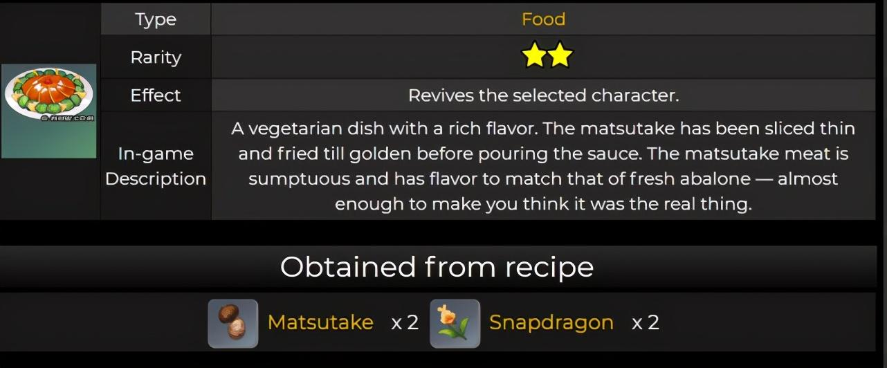 而这个素鲍鱼正是与胡桃有关的菜,也就是用胡桃烹饪这道菜的时候有可能产出角色特殊料理。不过产出后的菜应该怎么翻译我就有点拿不准了。