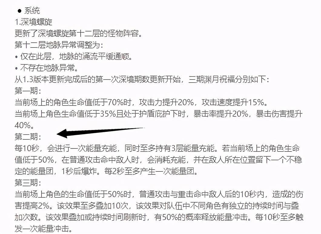 第一期的深渊buff是指的2月15号更新的深渊,而第二期自然也是指的3月1号了。不管是第二期还是第三期,我们非常显眼的能够发现生命值低于50%这个词条。而胡桃有一项天赋就是,当血量低于50%的时候,火伤增加33%,这暗示还不明显吗?