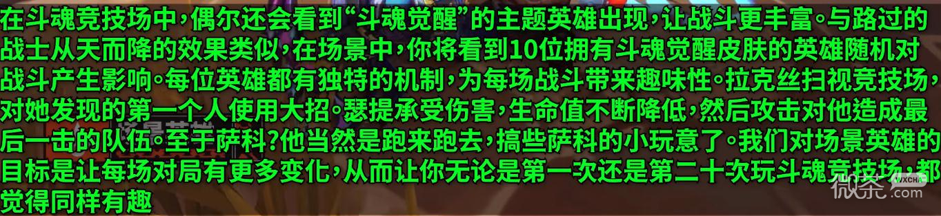 我们对场景英雄的目标是让每场对局有更多变化,从而让你无论是第一次还是第二十次玩斗魂竞技场都觉得同样有趣。