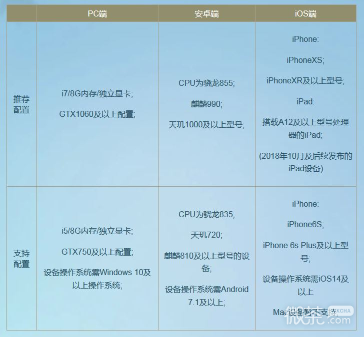 逆水寒手游机型配置说明