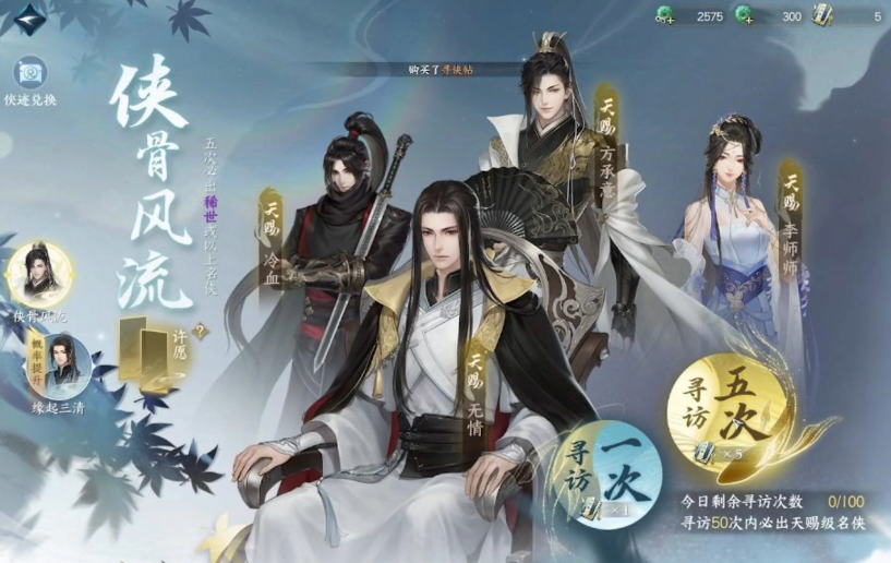 所以这个抽卡机制也属于一个交互的玩法,在跟NPC交互达到一定的数值之后,这个NPC就会送给大家一个招式,所以大家可以通弄过这种方式来获取绝技,不同的NPC会教的绝技都是不同的,比如如果大家抽到的是冷血,他会教授大家禅心不动这类绝技。
