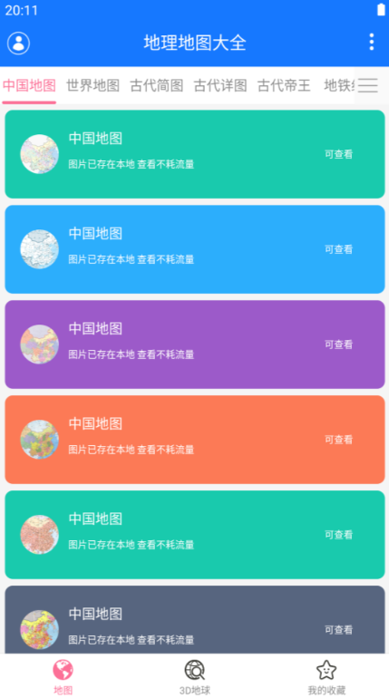 想要学好地理,对世界各地的地图是一定要了如指掌的,这款软件不仅有现代的中外地图,还包含了其它时期的地图,并且各省份、首都以及七大洲四大洋的具体位置全都标画的很清楚。