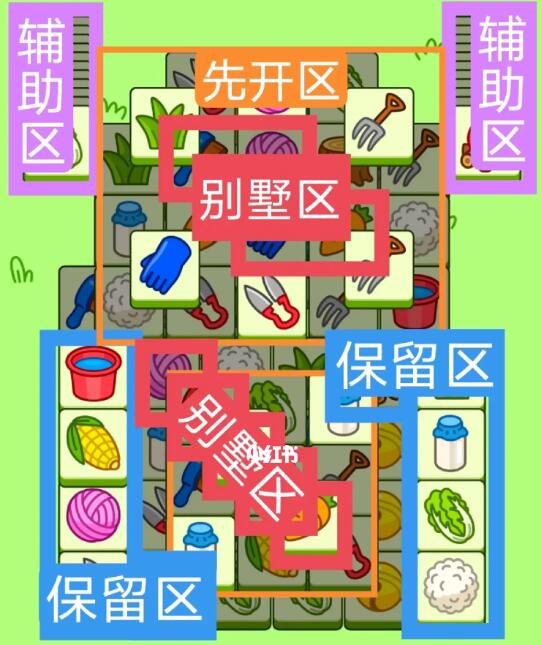3.必要时可以用紫色盲盒区辅助消除,盲盒区后期不用留太多,留几张备用即可。
