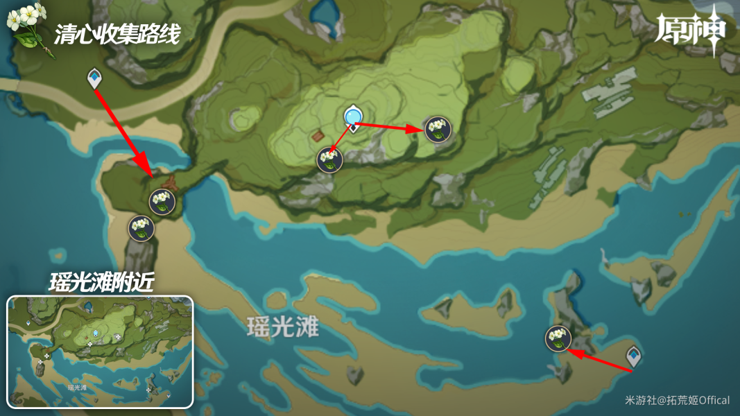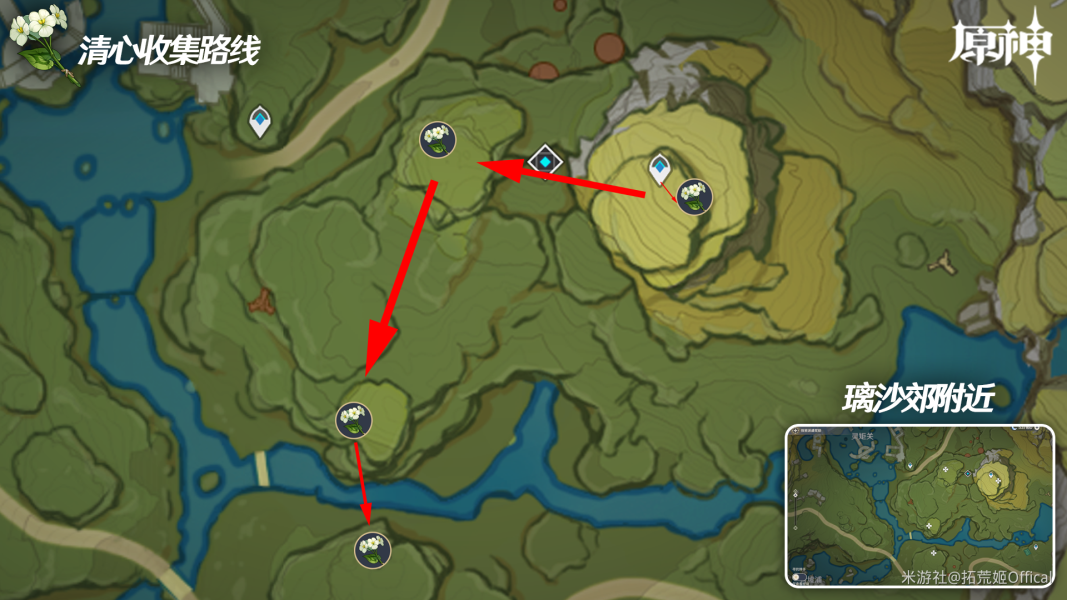 【路线七】:按照图示路线搜集,第二个位点注意防范丘丘射手!