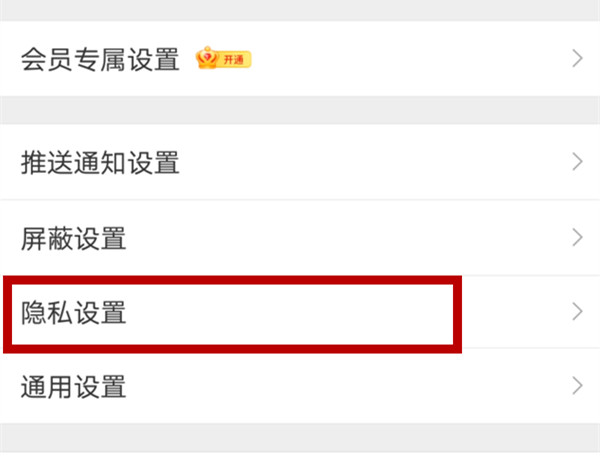 在设置列表中,点击隐私设置的选项。