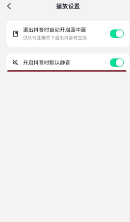 3、在播放设置中就可以看见“开启抖音时默认静音”,将该功能打开就可以了。