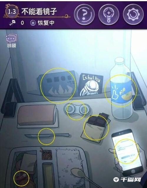 1、完美小姐她又没猜到结局1.3不能看镜子,点击以下黄色区域获取故事碎片,红色区域发现隐藏怪异之手。