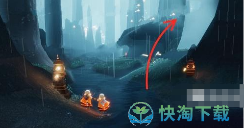 1、玩家需要从雨林荧光森林进入密林遗迹(水母图)之后,飞向右侧。