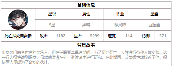 在第七史诗中,小伙伴们可以通过银河书签来抽取月光英雄,那么这些月光英雄都有哪些技能呢,本期小编给大家带来的是第七史诗月光英雄死亡探究者雷伊介绍,感兴趣的小伙伴下面跟着小编一起来看看吧。