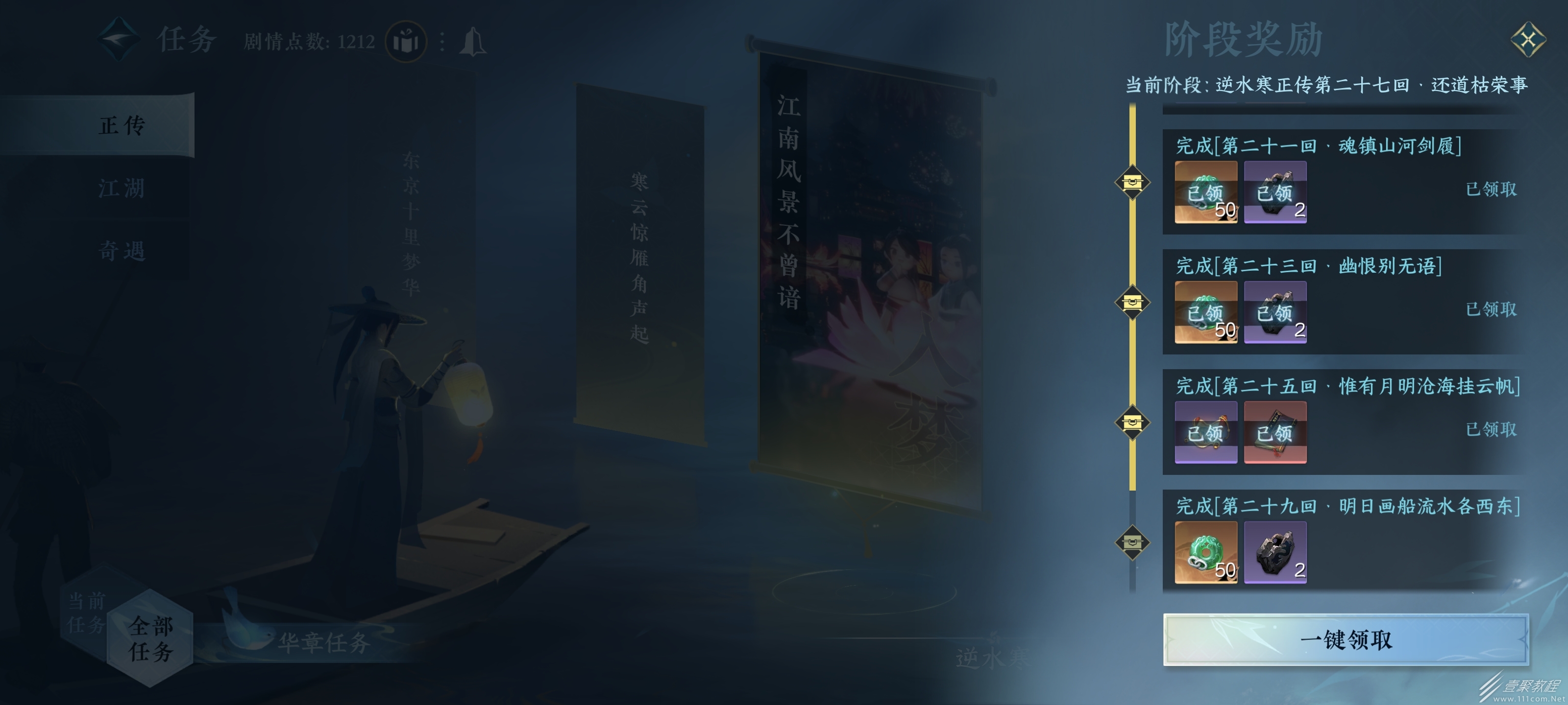 完成主线任务正传第二十七回【还道枯荣事】,即可获得竹隐翠生。