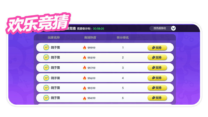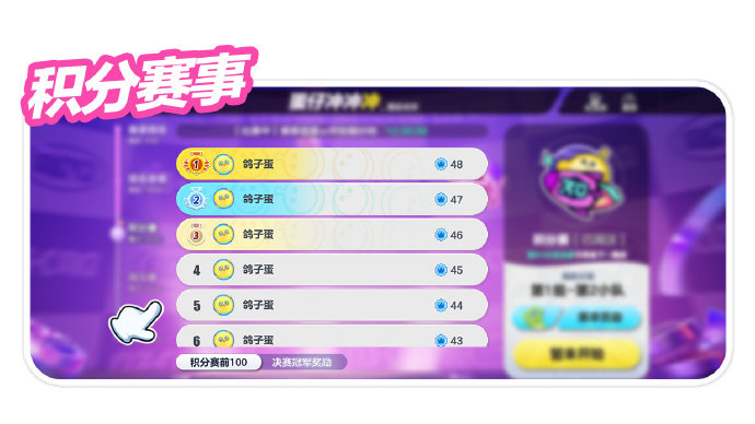 周日20:30,决战正式开启!最终总积分位居前列的蛋仔将得到海量彩虹币、至臻称号等丰厚奖励!