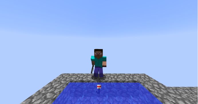 想生存食物是必不可少的,除了僵尸掉落的萝卜和马铃薯可以种植外,玩家还可以建造一个水塘来钓鱼。不仅可以钓出鱼,还有一定几率可以得到附魔书,这也是空岛附魔的唯一办法。