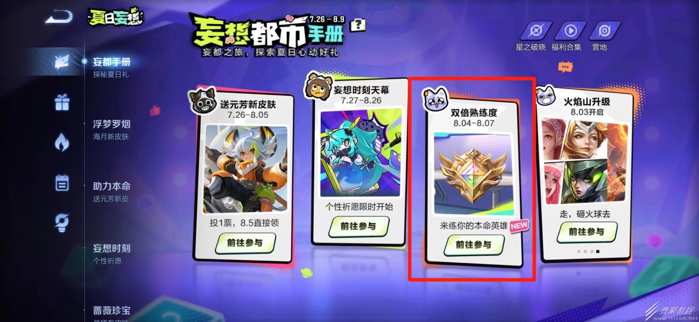 3、双倍熟练度活动将持续至8月7日,想要快速提升熟练度的小伙伴不要错过了。
