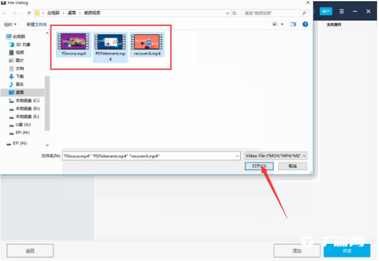3、选择需要修复的破损视频,点击“打开”按钮,将视频导入万兴数据恢复专家。