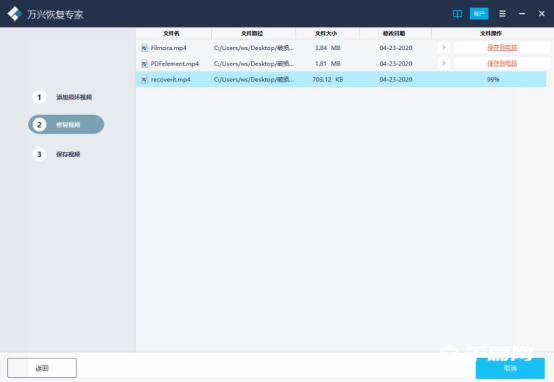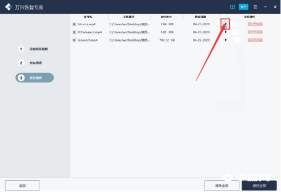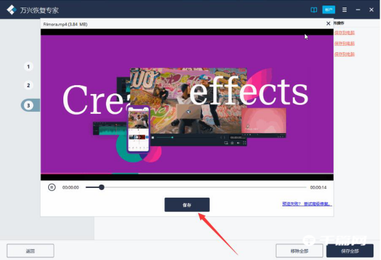 8、最后,如果万兴数据恢复专家将破损的视频恢复的效果符合自己要求,就点击“保存”按钮,选择保存路径后,即可有效保存。